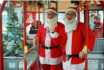 "We do this to give our customers some Christmas atmosphere," said Luo Chang-rong, a driver who said dressing up was voluntary and he didn't mind doing it.